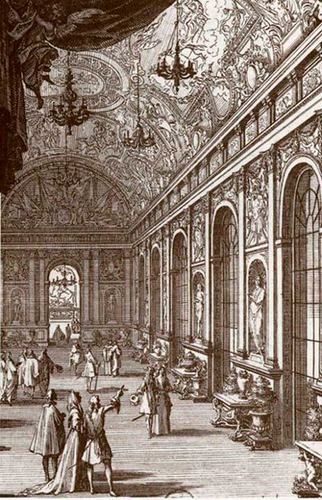 Pour continuer la suite des bontés que Monsieur à eues pour nous, étant à Paris, il me fit appeler et m'engagea de lui amener nos mandarins au Palais-Royal (23). Nous y trouvâmes en très bel ordre les gardes à cheval dans la première cour, les Suisses qui bordaient les dehors, et enfin le reste des officiers de la Maison, disposés dans toutes les salles. Ce grand prince, accompagné d'une cour magnifique, nous attendait dans la galerie qui passe pour une des plus vastes de Paris.