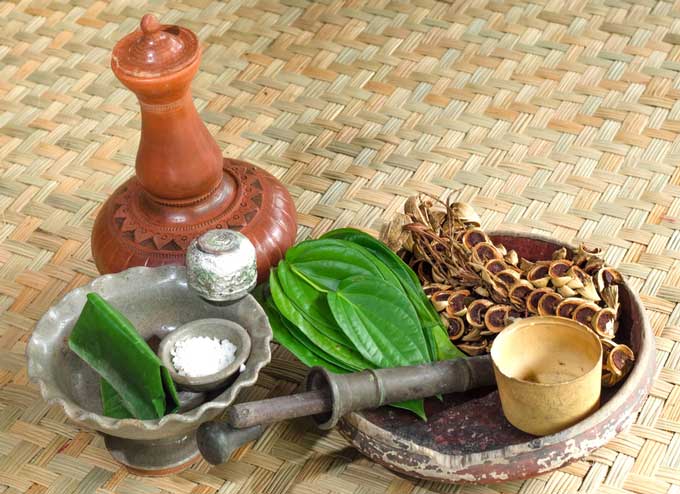 Ingrédients utilisés pour la confection des chiques de bétel. ⇑