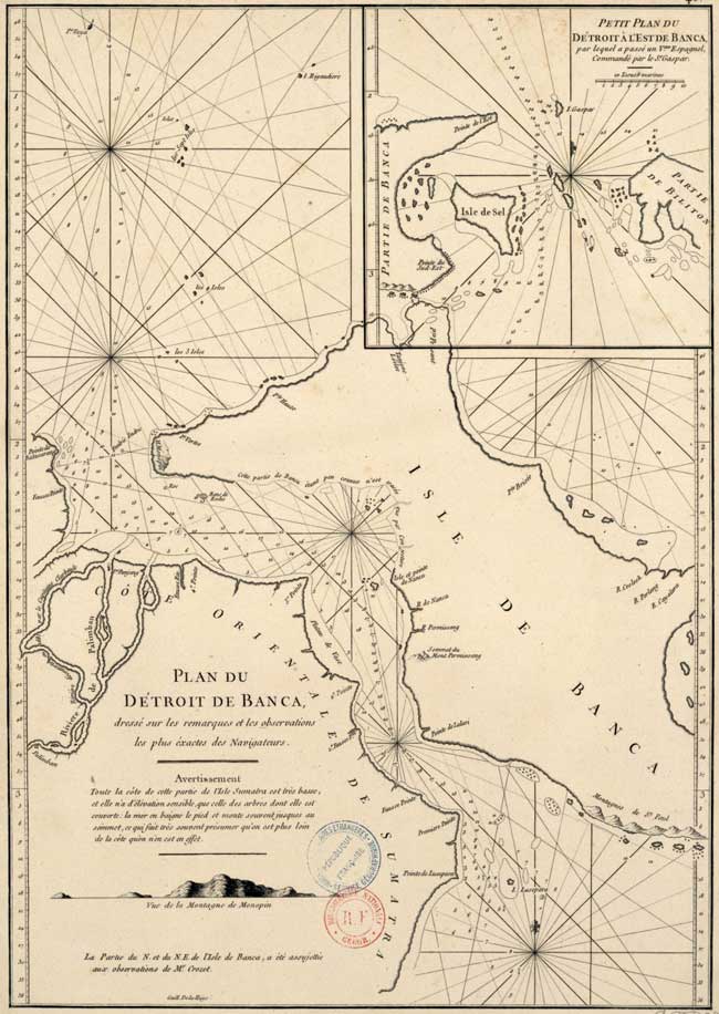 Le détroit de Banka - Carte du XVIIIe siècle. ⇑