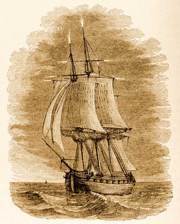 Nous avons couru toute la nuit au sud, et le Cap est bien loin. Nous allons présentement au sud-est jusqu'au 38ème degré, et puis droit à l'est jusqu'à mille lieues du Cap. Nous ferons ensuite le nord-est pour gagner l'île de Java et tomber brusquement dans le détroit de la Sonde. Car il faut bien prendre garde à ne se pas laisser dériver sur l'île de Sumatra : on ne pourrait plus regagner le détroit de la Sonde et il faudrait aller par celui de Malacca, qui est la mer à boire.
