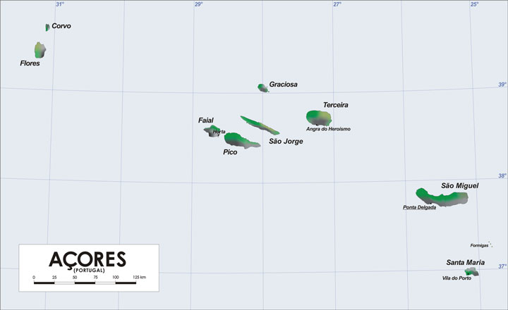 Carte des Açores (Wikipédia). ⇑