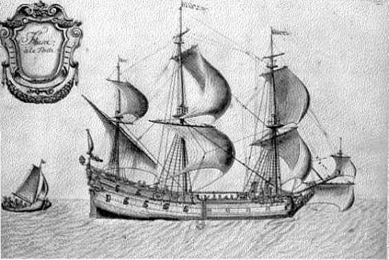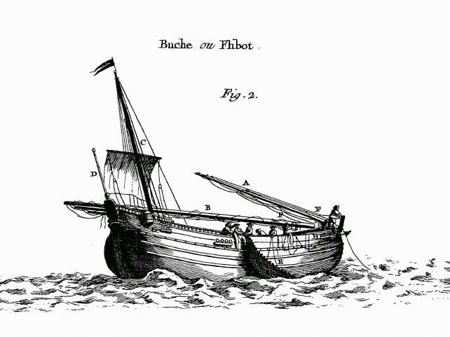 8 - Gros navire hollandais, au fond plat et aux formes renflées.