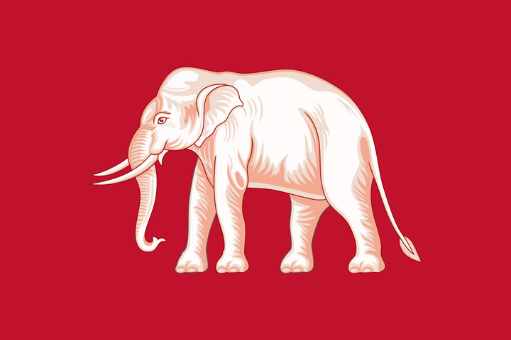 Drapeau officiel du Siam entre 1855 et 1916. ⇑