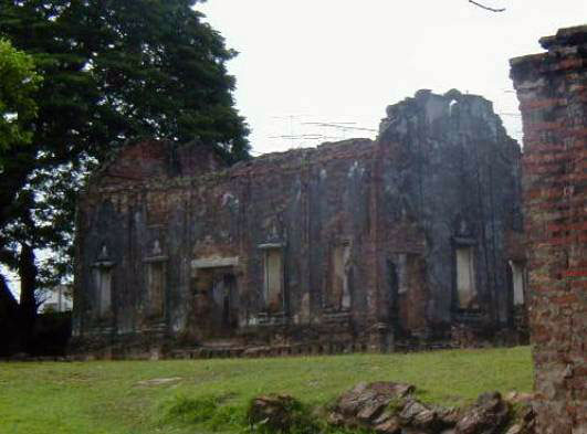 Les ruines de l'église catholique.