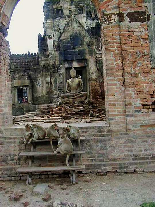 Les singes de Lopburi dans le Prang Sam Yot.