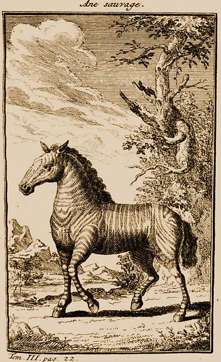 III - Zembras ou âne sauvage du cap. Illustration du Voyage de Siam. ⇑