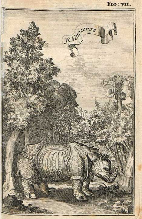 VII - Rhinoceros. Illustration du Voyage de Siam.