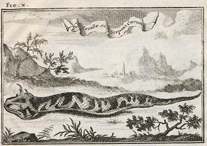 X - Céraste ou serpent cornu. Illustration du Voyage de Siam.