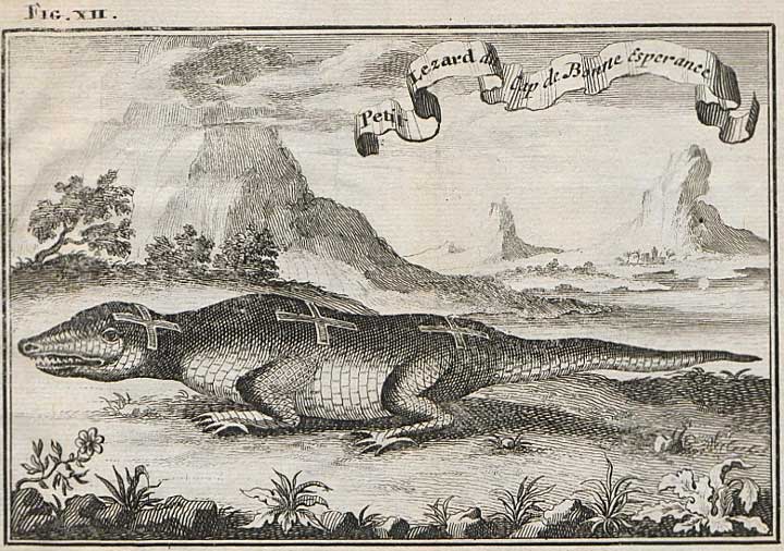 XIII - Grand lézard du Cap. Illustration du Voyage de Siam. ⇑