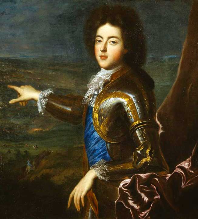 42 - Philippe d'Orléans (1674-1723), duc de Chartres, petit-fils de Louis XIII et fils de Philippe duc d'Orléans, (Monsieur). Il assurera la régence pendant la minorité de Louis XV entre 1715 et 1723. ⇑