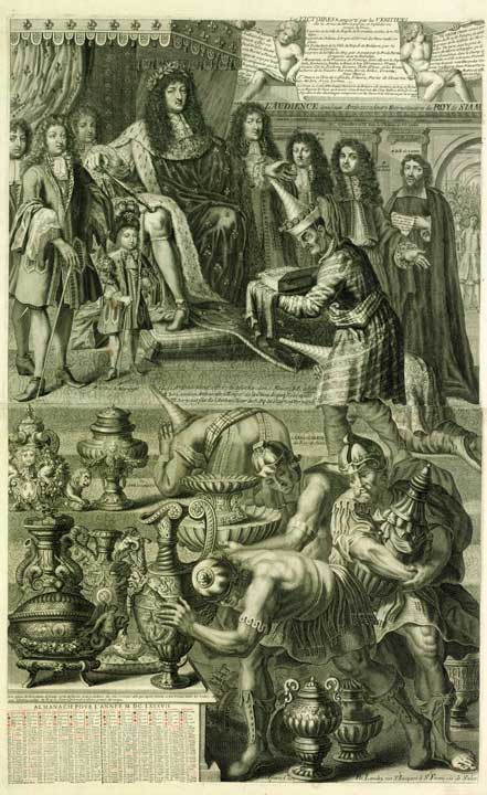 L'audience donné [sic] aux ambassadeurs extraordinaires du Roy de Siam. Almanach 1686.