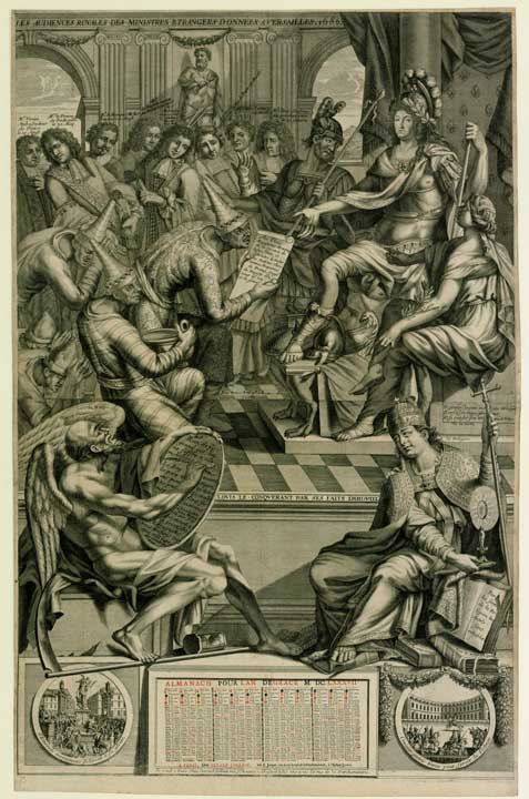 Les audiences royales des ministres étrangers données à Versailles en 1686. Détail.
