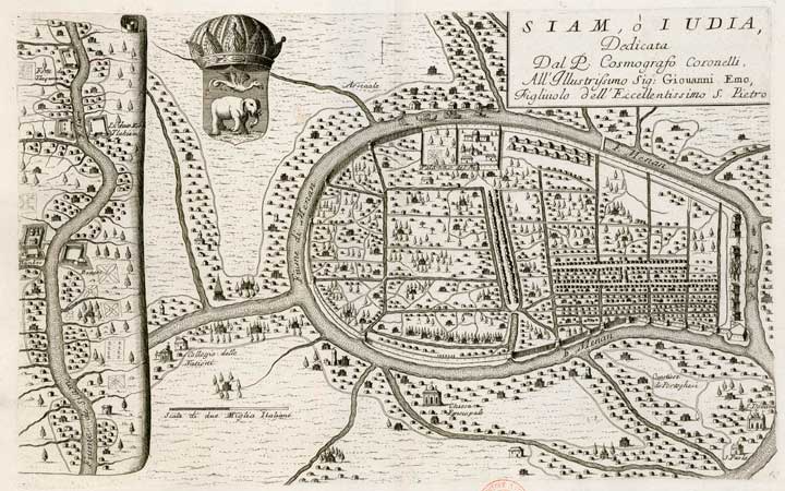 Plan d'Ayutthaya dressé par le père Coronelli. 1689. ⇑