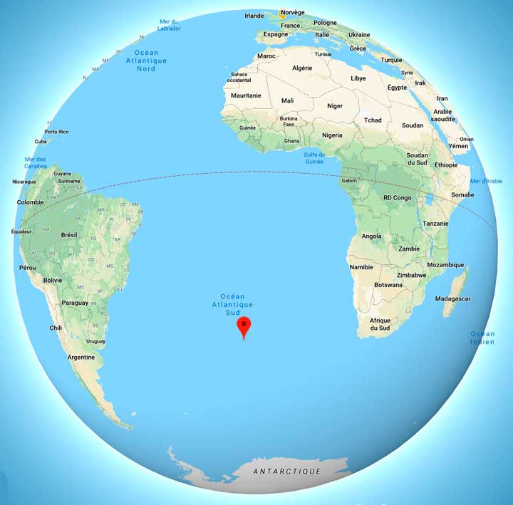 Localisation de l'île Tristan da Cunha sur Google Map. ⇑