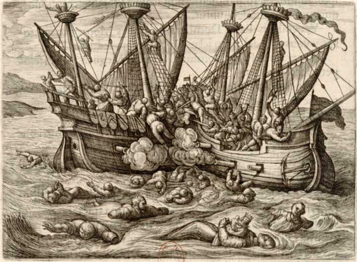 3 - Le 5 juin 1570, 39 jésuites portugais et espagnols quittèrent Lisbonne pour accompagner le père Ignacio de Azevedo, procureur de la Compagnie, pour un voyage vers le Brésil. Entre le 14 et le 15 juin, le vaisseau portugais fut attaqué près de l'île La Palma, dans l'archipel des Canaries, par le corsaire Jacques Sourie, de La Rochelle, vice-amiral de la reine de Navarre et acharné calviniste. Le capitaine portugais, ne croyant pas que son équipage serait suffisant en nombre pour résister à l'attaque, voulut armer les jésuites, mais Azevedo s'y opposa. Le navire portugais étant encerclé par les bateaux de Sourie, trois Français montèrent à son abordage, mais n'étant pas suivis par leurs compagnons, ils furent capturés par les Portugais, décapités et jetés à la mer. Sourie, rendu furieux par cette exécution, attaqua le navire avec une grande violence, et massacra une grande partie de l'équipage. Les pères jésuites étant considérés comme les responsables de la mort des trois marins français furent également massacrés et jetés à la mer. Ignacio de Azevedo fut déclaré bienheureux par Pie IX en 1854.