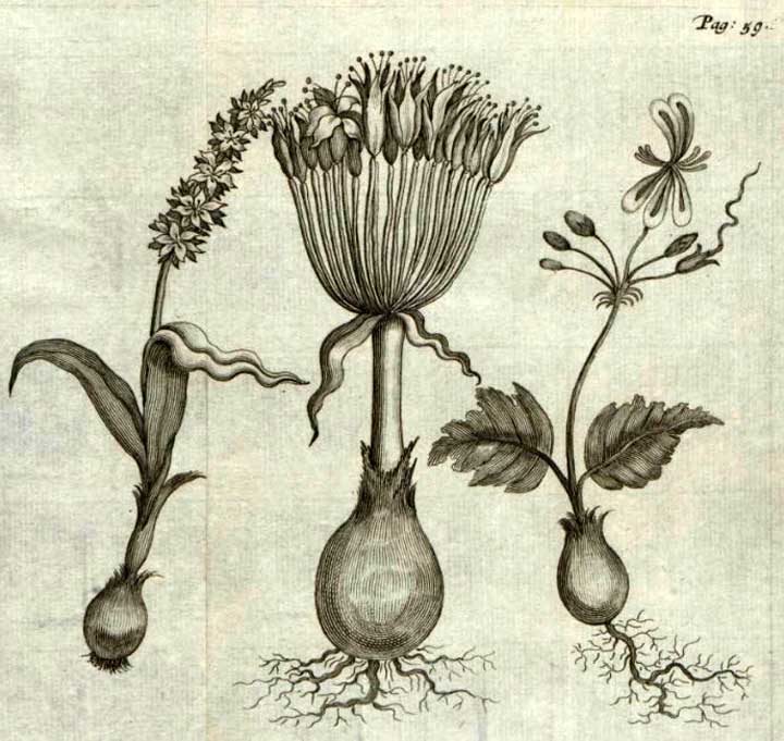Il est vrai que le temps fut si chargé et si incommode, que ce fut qu'avec des peines incroyables que nous observâmes deux émersions du premier satellite de Jupiter. Voici comme en parle le père Richaud le 19 du mois de juin : Le même satellite, après avoir disparu quelque temps auparavant, fut observé reparaître à 11 heures et 55 minutes du soir. Le 21 suivant j'observai son émersion à 6 heures 23 minutes du soir, combinant le temps de ces deux émersions avec celui que marquent pour Paris les éphémérides de M. Cassini, savoir 10 heures 25 minutes et 5 heures 3 minutes. La différence de longitude entre Paris et le cap de Bonne-Espérance sera de 2 degrés (10). Il est vrai que la lunette d'environ 14 pieds n'étant pas tout à fait bien arrêtée et ayant quelques mouvements, je crains que l'émersion réelle n'ai précédé de quelque minute le temps que je l'ai aperçue : mais ce ne peut être que d'une minute ou de deux au plus. Dans un conférence que nous eûmes le père de Bèze et moi avec M. de Van der Stel, il nous parla de quelques plantes curieuses qu'il avait découvertes dans ses voyages, et dont il nous montra un recueil. Il nous voulut bien permettre d'en faire dessiner quelques-unes des plus curieuses, dont voici les figures, et me promit au retour de me les donner toutes pour la bibliothèque du roi, avec une courte description du pays où elles naissent et des principales vertus qu'on leur attribue (11).