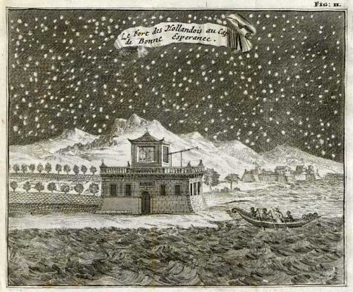 Quand j'étais parti du Cap la dernière fois pour revenir en France, j'avais assuré M. de van der Stel que je repasserais l'année suivante pour retourner aux Indes, et que j'amènerais bonne compagnie, sur quoi il m'avait fait beaucoup d'offres. Dans l'entretien qu'il eut avec M. de Saint-Clair, il se souvint de ses offres obligeantes et de la promesse que je lui avais faite, et ce capitaine m'assura qu'il s'était informé particulièrement de mes nouvelles. Je ne manquai pas de l'aller voir dès ce jour-là même avec un de nos pères. Après les premiers compliments, où il nous fit mille amitiés, ayant appris que j'avais amené quatorze jésuites mathématiciens avec les mêmes recommandations du roi que les six premiers, il nous dit que le pavillon où nous avions logé la première fois ne pouvait pas tenir commodément tant de personnes, qu'ainsi il nous offrait une grande maison qu'il avait à la campagne, à une lieue du Cap, avec un fort beau jardin où nous aurions toutes sortes de rafraîchissements pour nous remettre des fatigues passées, et un lieu propre à faire nos observations astronomiques. Nous le remerciâmes avec beaucoup de reconnaissance de son honnêteté et lui ayant témoigné que le peu de temps que nous avions à rester au Cap, et la communication continuelle que nous étions obligés d'avoir avec les Français, surtout avec les malades, ne nous permettait pas de nous loger si loin, et que puisqu'il nous l'avait offert si obligeamment, nous demeurerions encore cette fois dans l'ancien observatoire qu'il nous avait donné le voyage précédent. Comme nous n'y avons rien trouvé de changé, je n'ai rien à ajouter ici à la description que j'en ai faite (5).