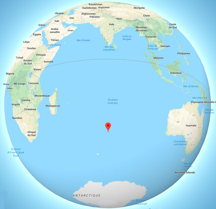 Localisation de l'île d'Amsterdam sur Google Map. ⇑