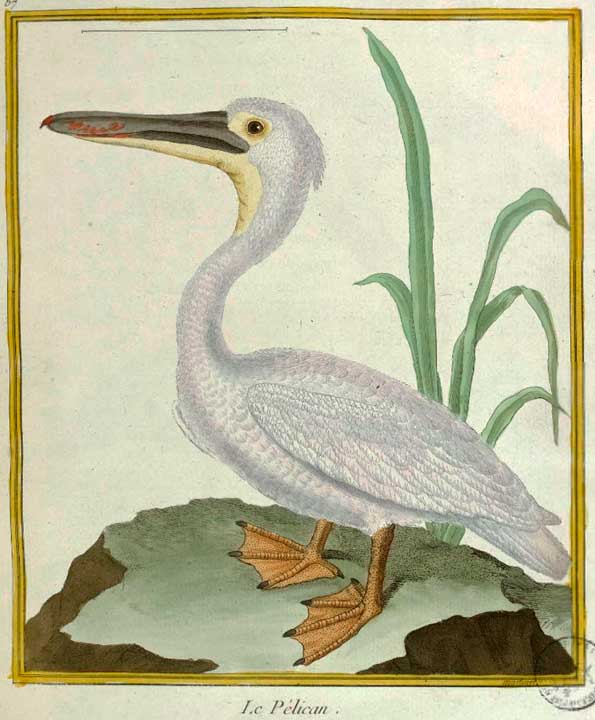 Pélican. Illustration de l'Histoire naturelle des oiseaux de Buffon. 1784. ⇑