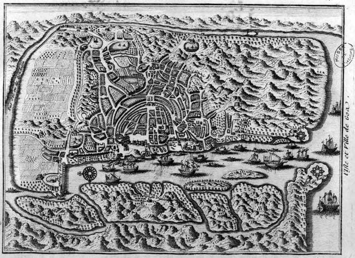 L'île et la ville de Goa. Gravure de Joseph-François Lafitau, 1733. ⇑