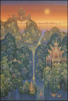 Le roi Virupak règne sur le sommet de la montagne Jukhunthon, du côté occidental, et sa domination s'étend également jusqu'aux murailles du monde. Tous les kinonกินรี (serpents fabuleux qui peuvent prendre à leur gré la forme humaine ou une autre forme) qui sont dans les eaux ou sur la terre, sont soumis à son empire.