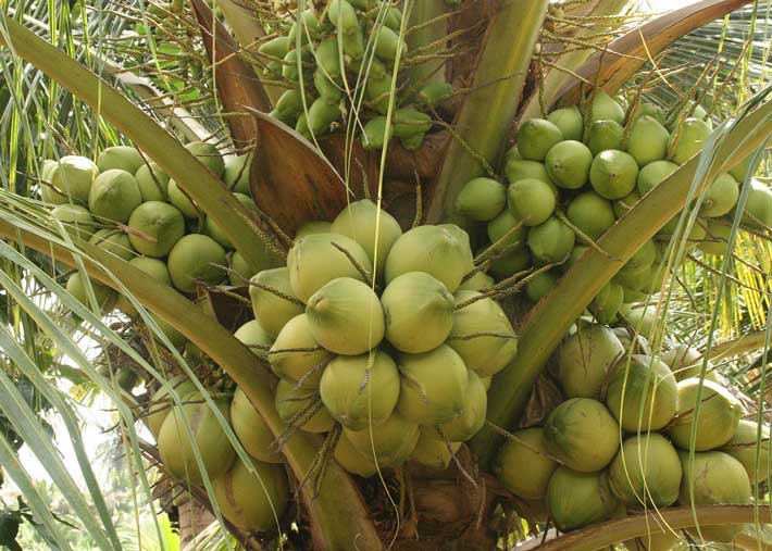 Je m'étendrais à décrire les merveilles du coco, si je ne savais que les auteurs qui parlent des Indes se sont appliqués à en représenter avec soin toutes les propriétés. Il n'y a point d'arbre en toute la nature qui soit utile à tant de choses, et qui fournisse à plus d'usages. Son tronc sert à bâtir les maisons, son feuillage à les couvrir, on fait des cordages de son écorce, des vaisseaux à boire et à contenir des liqueurs de la coque qui enferme son fruit, qui fournit pour boisson une liqueur blanche qui est agréable, et pour manger une chair ferme et savoureuse qui ressemble aux noisettes, dont on exprime une huile fort bonne ; enfin sa feuille étant tissée fait des paniers assez forts et commodes même pour contenir de l'eau, et cet arbre seul est un abrégé de merveilles et de commodités pour la vie des hommes (5).