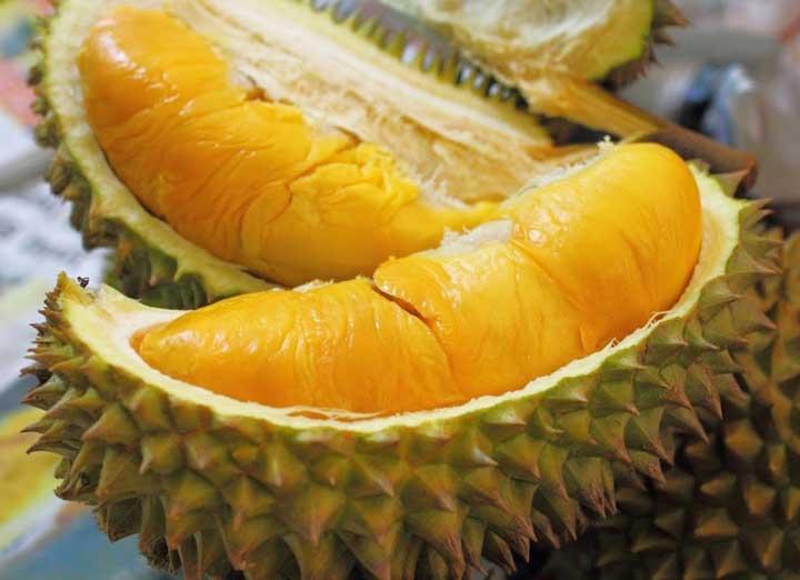 1 - Le durian - Littré indique aussi Dourion ou Dourian - (Thurian : ทุเรียน) est le fruit du Durio zibetinus, arbre tropical de la famille des bombacées. Très apprécié en Asie, son odeur pestilentielle rebute souvent les narines occidentales.