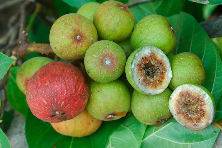 Parmi les espèces non comestibles, il faut citer le figuier des pagodes, ou pipal avec ses feuilles en forme de cœur - Ficus religiosa (Phra Sri Maha Pho : ต้นพระศรีมหาโพธิ์), sous lequel Bouddha a atteint la connaissance suprême, et le figuier des banians - Ficus benghalensis (Krai : ไกร) .