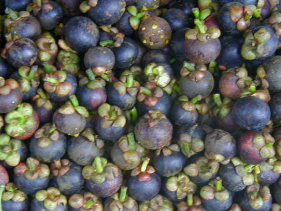 3 - Le mangoustan, ou mangostan (mangkhut : มังคุด), est un fruit de la grosseur d'une petite orange qui renferme une pulpe blanche, molle, fondante, d'une saveur sucrée légèrement acidulée, avec le parfum de la framboise.