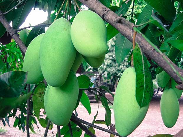 7 - Le manguier (mamuang : มะม่วง) est un grand arbre à cime étalée, que l'on cultive aux Indes, au Brésil et à la Guyane. (Mangifera indica) famille des térébinthacés anacardiées. Son fruit, la mangue, est savoureux et d'une odeur agréable. Quelques-uns le comparent à la pêche. (Littré). À noter que les Thaïs mangent souvent la mangue très verte et très acide.
