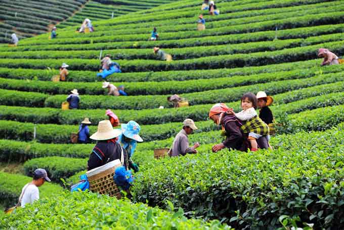 Récolte du thé dans la région de Chiang Rai. ⇑