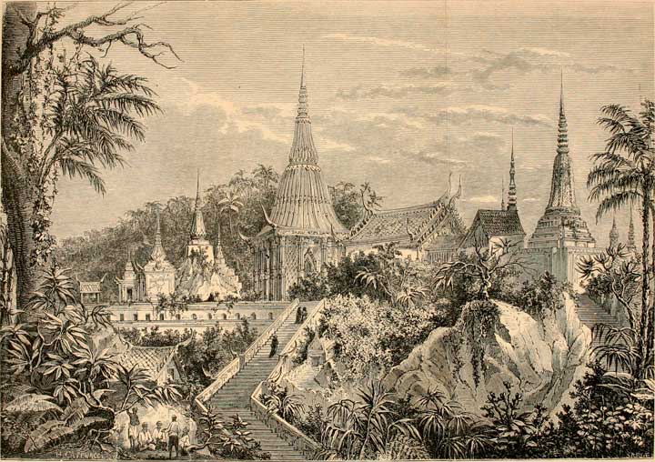 Le temple de l'empreinte de Bouddha près de Saraburi au XIXe siècle. ⇑
