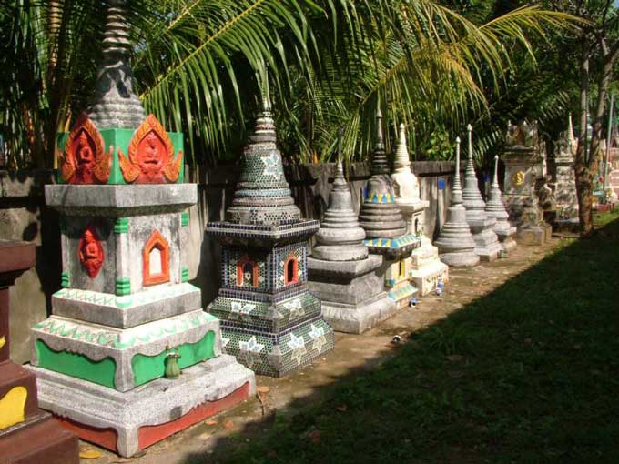 Chedis contenant des cendres dans un wat thaïlandais.