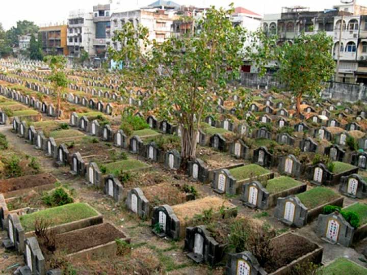 7 - Pacha (ป่าช้า) : cimetière. Les cimetières sont rares en Thaïlande, car, même si ce n'est nullement une obligation bouddhiste, la coutume de la crémation est solidement établie et les cendres des défunts sont généralement conservées dans les temples. Aucun Thaïlandais n'y dérogerait, pour lui-même ou pour un être cher, d'autant qu'une superstition veut que les corps non incinérés deviennent des phi, des esprits malfaisants. Seuls sont enterrés ceux que la mort fauche dans la misère, ceux qu'aucune famille ne réclame ou dont personne ne veut ou ne peut payer les funérailles ni l'incinération. Pour ceux-là, pas de cérémonie, pas de crémation, sauf à compter sur la charité et les associations caritatives, telles la fondation Poh Teck Tung qui, chaque année, organise des cérémonies religieuses au cours desquelles elle fait procéder à la crémation de milliers de corps.