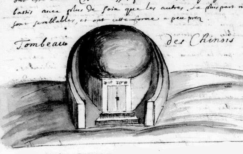 Tombeau des Chinois dessiné par le jésuite Jean Richaud (1687). ⇑