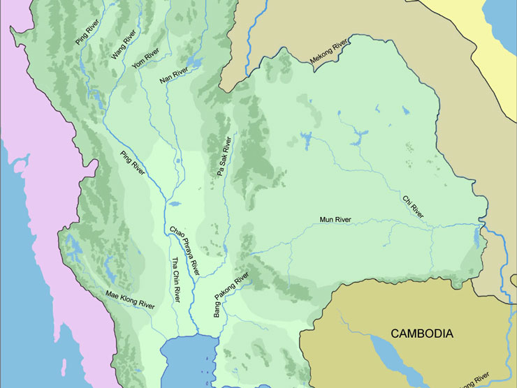 Carte des principaux cours d'eau de Thaïlande. ⇑
