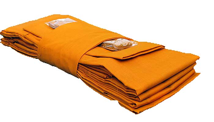 Les trois pièces du trai chiwon des bonzes thaïlandais. ⇑