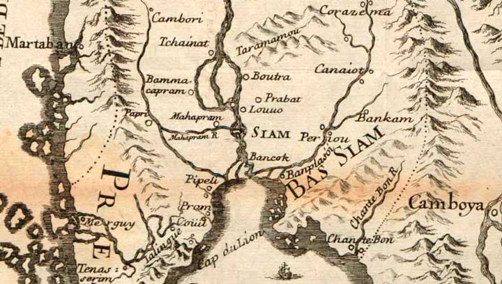 Carte du royaume de Siam, détail. ⇑