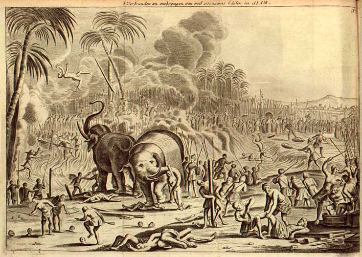 Les principaux seigneurs de Siam brûlés et massacrés. ⇑