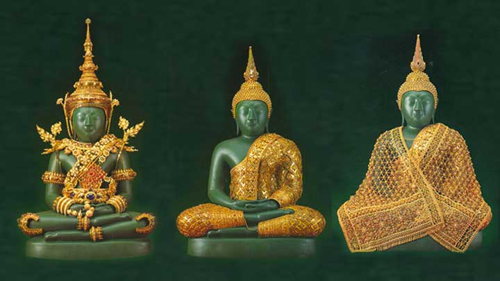 3 - Aujourd'hui, chaque changement de saison donne lieu à une cérémonie solennelle. Le premier jour de la lune déclinante des 4ème, 8ème et 12ème mois de l'année lunaire (généralement mars, début de la saison chaude, août, début de la saison des pluies, et novembre, début de la saison fraîche), le roi ou une personne de la famille royale change la robe du Bouddha d'émeraude au Wat Phra Kaeo à Bangkok. Les robes de la saison des pluies et de la saison chaude ont été réalisées sous le règne de Rama I, fondateur de la dynastie Chakri (1737-1809), et celle de la saison fraîche sous le règne de Rama III (1787-1851). La cérémonie telle qu'on la pratique aujourd'hui est vraisemblablement d'origine assez récente, elle ne figure ni dans l'article de G.E. Gerini consacré aux fêtes siamoises dans l'Encyclopædia of Religion and Ethics (V, 1912), ni dans l'ouvrage Siamese State Cerémonies de H.G. Quaritch Wales (1935).