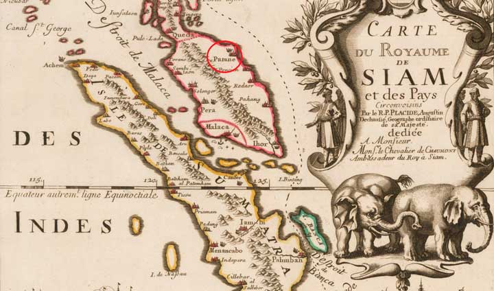 3 - Erreur d'autant plus surprenante de la part de La Loubère que toutes les cartes de l'époque situaient sans ambiguïté possible Patani à l'est de la péninsule malaise, sur le golfe de Siam.