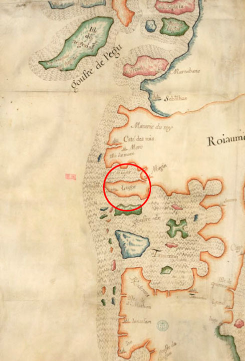7 - S'agit-il de Nakhon Si Thammarat (นครศรีธรรมราช), en Thaïlande, que l'on appelait autrefois Ligor ? Cette ville fut jusqu’au VIIe siècle la capitale du royaume de Tambralinga. On l’appela également Nagara Sri Dhammaraja (Cité du roi Dharma) pendant l’empire de Srivijaya, entre le VIIe et le XIIIe siècle. Cependant, la Bibliothèque Nationale conserve une carte manuscrite anonyme et non datée représentant la façade ouest de la péninsule malaise, entre Pegou et Queda, sur laquelle apparaît un Lugor à la hauteur de Mergui, qui pourrait bien, après tout, être celui mentionné par Leblanc.