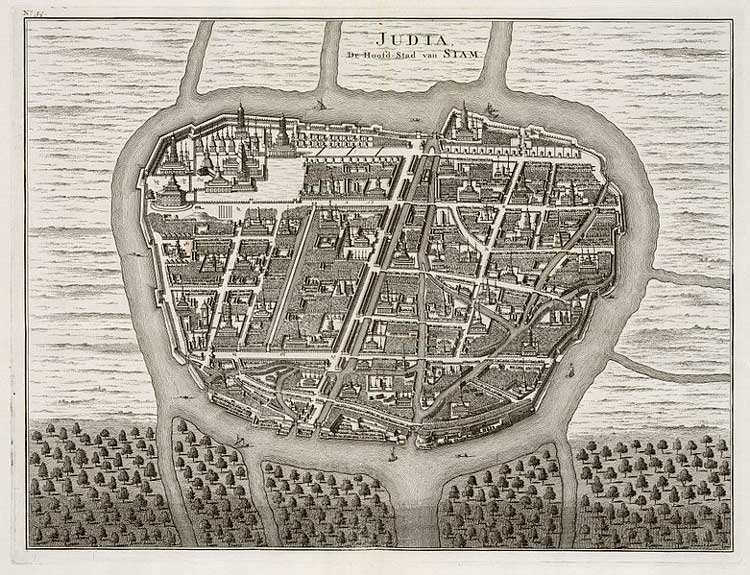 Judia, la capitale du Siam (Valentijn, Oud en Nieuw Oost-Indiën, IV, planche 34).