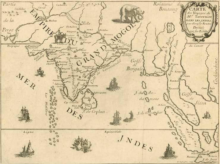 Détail de la carte des voyages de Jean-Baptiste Tavernier. ⇑