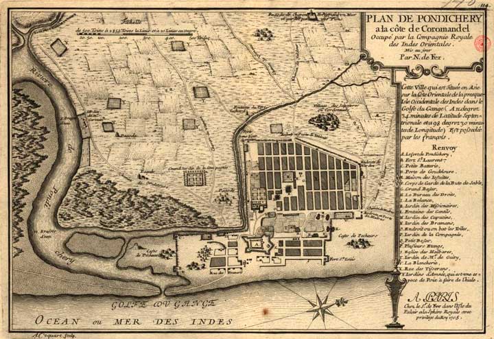 Plan de Pondichéry. Nicolas de Fer, 1705. ⇑