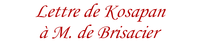 3 - Adrien Launay indique en note que les Missions Étrangères conservent deux autres lettres de Kosapan, à peu près identiques à celle-ci, sauf les premières lignes et les dernières, l'une adressée à François Martin, gouverneur de Pondichéry, l'autre au père de La Chaize. (Histoire de la Mission de Siam, 1920, I, p. 283, note 1). ⇑