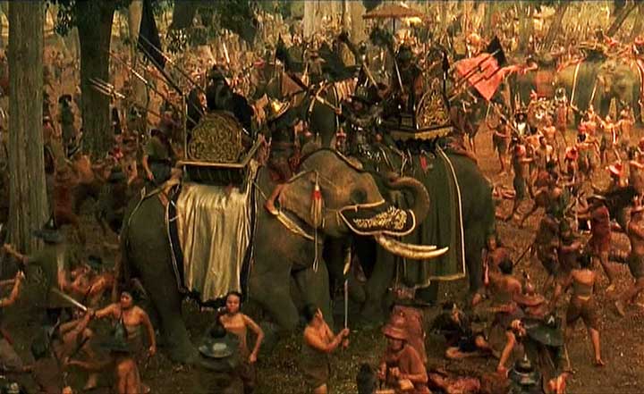 Éléphant de combat. Vidéogramme du film Suriyothai de Chatrichalerm Yukol (2001). ⇑