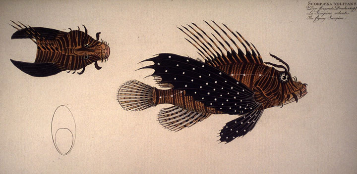Scorpène volante. (Ichtyologie ou histoire naturelle générale et particulière des Poissons, Bloch, 1795-1797). ⇑