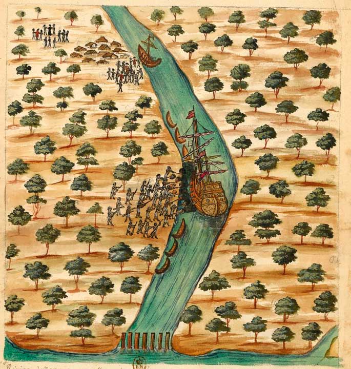 E 1er mars 1687, six vaisseaux partaient de Brest, amenant au Siam 1 361 passagers. Parmi eux, outre les équipages, les deux envoyés Céberet et La Loubère (qui n'avaient pas officiellement le titre d'ambassadeurs), les trois mandarins siamois qui rentraient au pays avec leur suite après un séjour de plus de 8 mois en France, les inévitables jésuites, dont le père Tachard, des missionnaires, mais aussi 600 hommes de troupe avec leurs armes et leurs officiers, des artisans avec leurs outils, des chirurgiens avec leurs instruments, et même des peintres et des musiciens. On n'allait pas seulement signer des traités, on allait prendre possession du royaume dont Phaulkon avait livré les clés. Au demeurant, les intentions de Louis XIV consignées dans les Instructions données aux ambassadeurs étaient sans équivoque : Si le changement de gouvernement qui peut être arrivé depuis le départ des ambassadeurs, ou celui de la volonté du roi de Siam, leur ôtait toute espérance de réussir dans leur négociation, Sa Majesté a résolu en ce cas de faire attaquer Bangkok et de s'en rendre maître à force ouverte et elle donnera ses ordres au sieur Desfarges sur ce sujet, par lesquels elle lui expliquera qu'il ne doit en venir à cette extrémité qu'après que les dits sieurs de La Loubère et Céberet lui auront fait connaître qu'il n'y a pas d'autre moyen de réussir. (Archives Nationales, Colonies, C1 27, f° 12r°).