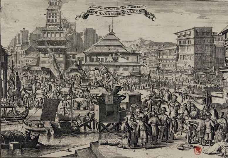 Commerce et marchandises à Bantam - La Galerie agréable du monde, 1729. ⇑